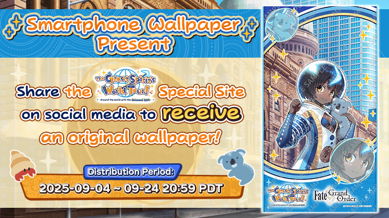 We'll be distributing a smartphone wallpaper on the Limited Time Event "The Great Spirit's World Tour! Around the World with the Esteemed Spirit" Special Site!