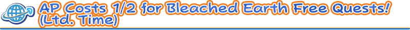 Free Quests on the Bleached Earth will have their AP costs halved during the period below! (AP costs will be halved even if you withdraw from battle)