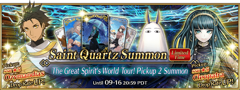 Two Limited Time Servants and three Limited Time Craft Essences to help progress through the Limited Time Event "The Great Spirit's World Tour! Around the World with the Esteemed Spirit" will be available for Pickup!