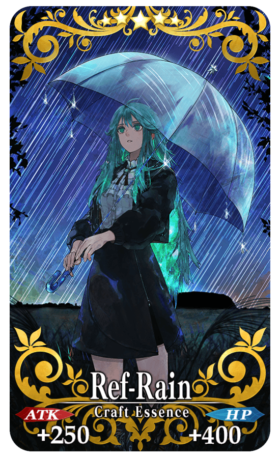 Limited Time Craft Essences - ★5 (SSR) Ref-Rain - ★4 (SR) Smiling Knight - ★3 (R) Still on the Road