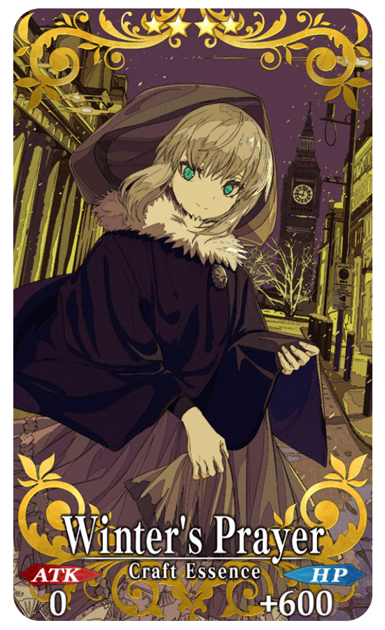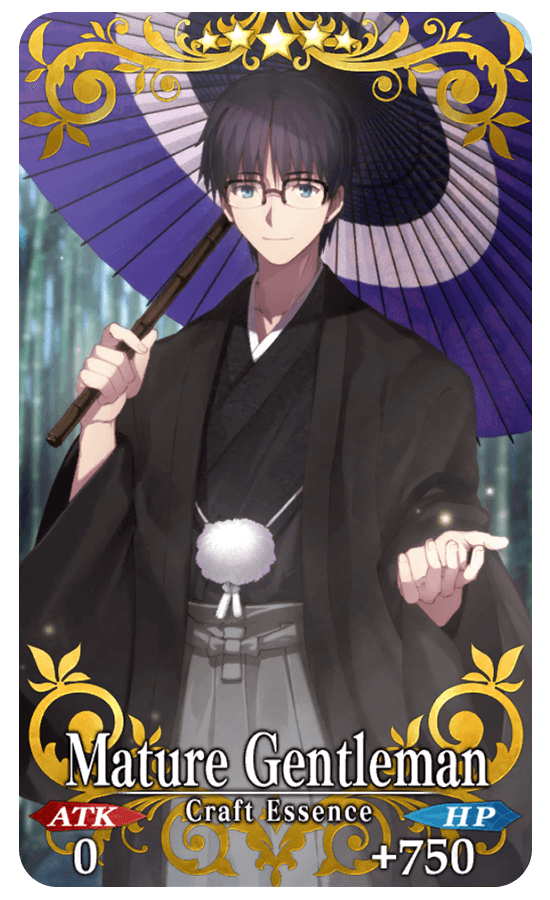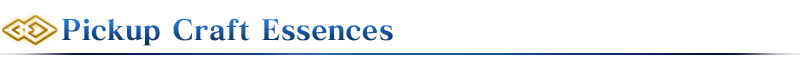 About Featured Craft Essences: * The following Limited Time Craft Essence(s) will only be summonable from the Summon Lineup(s) where they are featured as Pickup Craft Essences. Please be sure to confirm the lineup before summoning. - ★5 (SSR) Mature Gentleman - ★5 (SSR) Grand Puppeteer - ★5 (SSR) Trick or Treatment - ★5 (SSR) Whydunit - ★4 (SR) Vivid Dance of Fists - ★4 (SR) Mystic Eyes of Distortion - ★4 (SR) Phantom Night - ★4 (SR) Winter's Prayer - ★3 (R) Sprinter - ★3 (R) Repeat Magic - ★3 (R) From Wonderland - ★3 (R) El-Melloi's Classroom * The following Craft Essence(s) will also be available from Friend Point Summon only for the duration of the Pickup Summon(s) where they are featured as a Pickup Craft Essence. In addition, the Craft Essence(s) will be automatically burned if you have ★3 (R) Craft Essences included in your Automatic Burning settings. Please check your settings before summoning. - ★3 (R) Sprinter - ★3 (R) Repeat Magic - ★3 (R) From Wonderland - ★3 (R) El-Melloi's Classroom