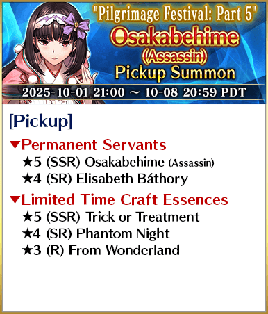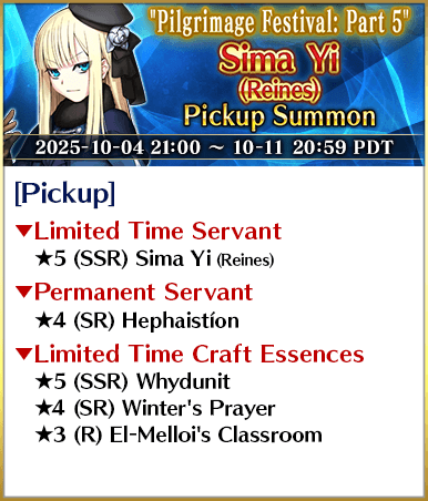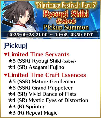 "'Pilgrimage Festival: Part 5' Pickup Summon" Schedule: