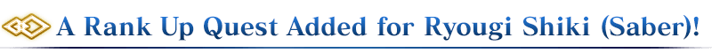 A Servant Rank Up Quest to strengthen ★5 (SSR) Ryougi Shiki (Saber) will be permanently added to Chaldea Gate.