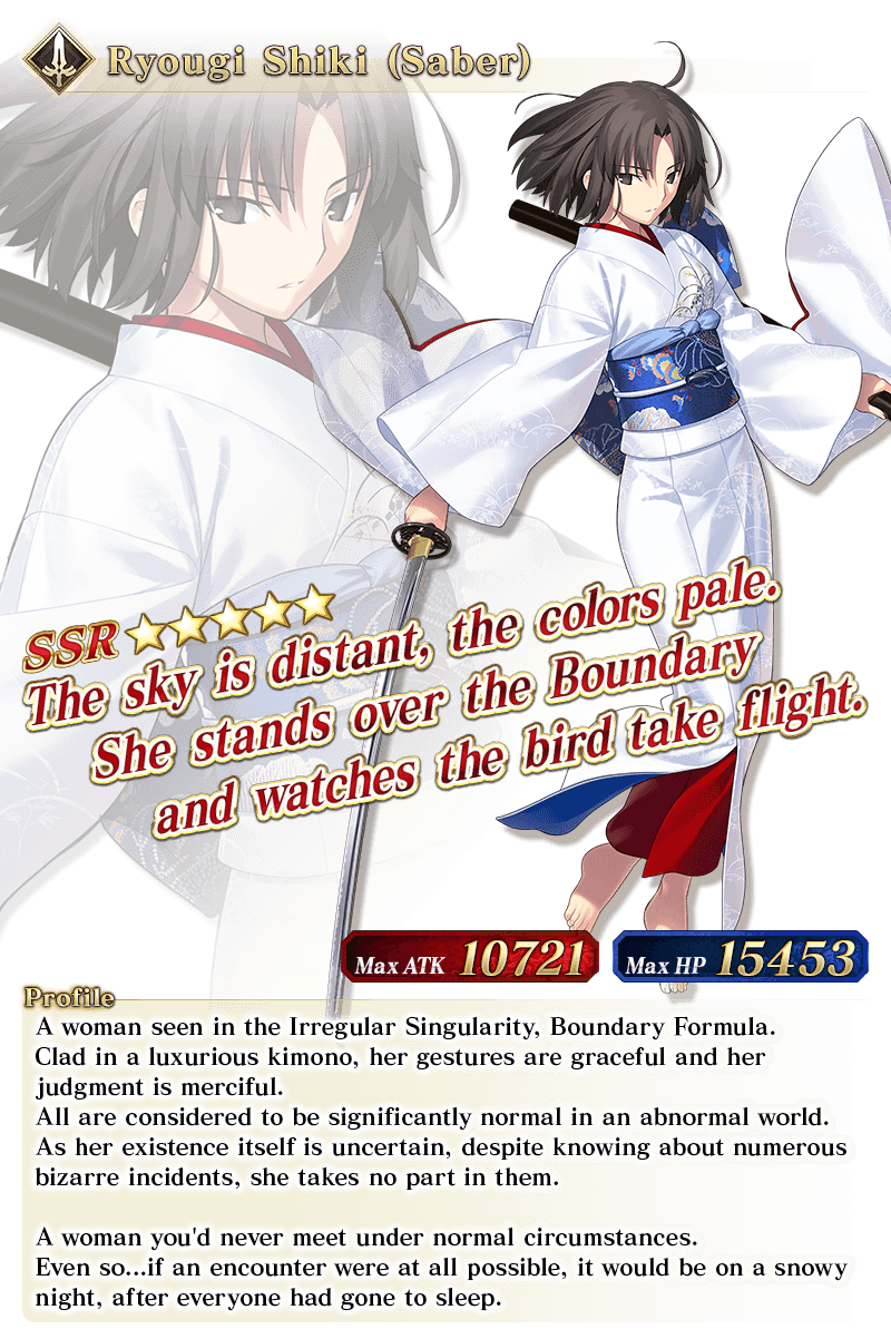 - ★5 (SSR) Ryougi Shiki (Saber)