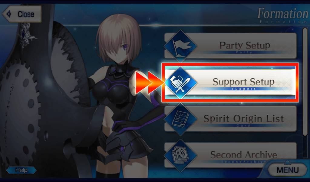 Support Setup is where you set up the Servants you would like your friends or other Masters to bring into battle.