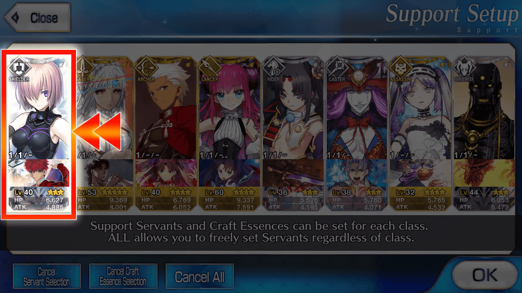 4. Furthermore, in the "ALL" slot, you can set any Servant regardless of their Class.