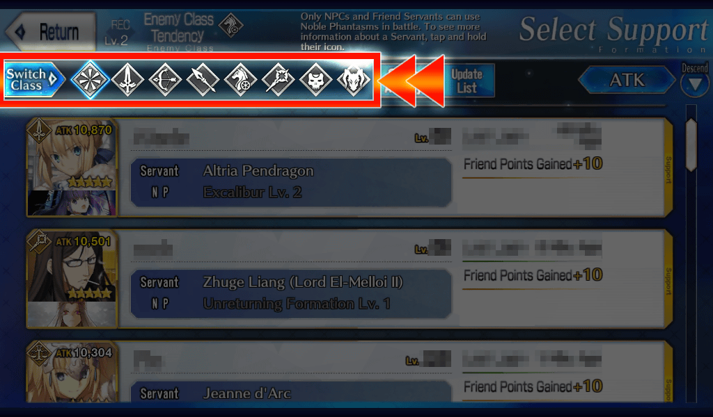 Pay attention to the enemy's Class tendency, and then select the best Support Servant! It will help you in your battle.